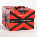 Indulge in the culinary magic of Fratelli Sicilia's Etna Dark Panettone, a decadent masterpiece born from the skilled hands of young artisan bakers, Piero and Salvo. This exquisite chocolate panettone cake reveals a luscious secret within— a velvety blood orange cream filling that surprises the taste buds with every bite. Enrobed in dark chocolate, it boasts a rich, bittersweet finish that perfectly balances the vibrant citrus notes of the blood orange. The delightful crescendo comes with candied blood orange peels adorning the top, providing an exquisite blend of textures and flavors. Made with free-range organic eggs, Italian flour, and an unwavering commitment to using only the finest ingredients, Fratelli Sicilia's Etna Dark Panettone embodies the essence of Sicilian craftsmanship. This extraordinary creation is a testament to the rich heritage and innovative spirit of the brothers, promising a truly exceptional taste of Sicily and a perfect addition to your festive celebrations or as a thoughtful gift that reflects their passion for perfection.