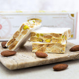 Savor the elegance of Sicilian culinary traditions with Pennisi's Soft Torrone Nougat, adorned with the finest Sicilian almonds. Handcrafted with love and precision in the heart of Italy, this exquisite confection offers a delicate and creamy nougat, richly complemented by the nutty sweetness of Sicilian almonds. Each bite is a sensory journey, capturing the essence of Sicilian terroir, and promising a moment of pure indulgence.