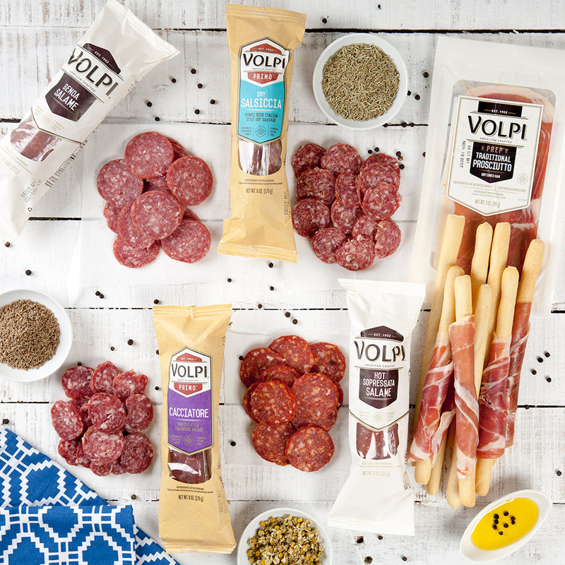 From antipasti to pizza, Volpi salami is a classic way to add an Italian touch to any part of the meal. We paired Grissini Breadsticks from Piamonte, with 5 of our favorite salume by Volpi, a tradition that reflects old world craftsmanship of artisanal salami. From award-winning sliced Prosciutto to traditional Genoa salume, this set is perfect for entertaining or tasting.DITALI