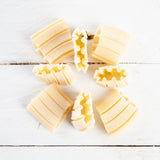 Not your standard Paccheri pasta shape. Paccheri Greci are tubular in shape like paccheri, but flat and have ridges. One of the cuts of pasta that Marella are most proud of, just like we are!